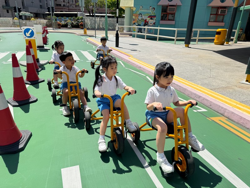 幼兒參觀「沙田交通安全公園」,透過單車練習場、模擬道路、交通燈、路牌及模型天橋等,認識過路設施及正確過路方法。 |